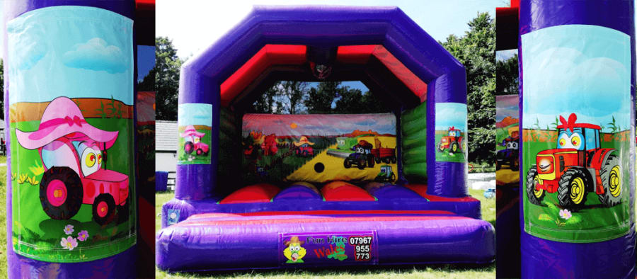 Here we have a a multi-themed disco ready bouncy castle available in a Farm Theme, suitable for both children and adults alike and it has a quality rain cover to ensure nobody gets caught in the rain.