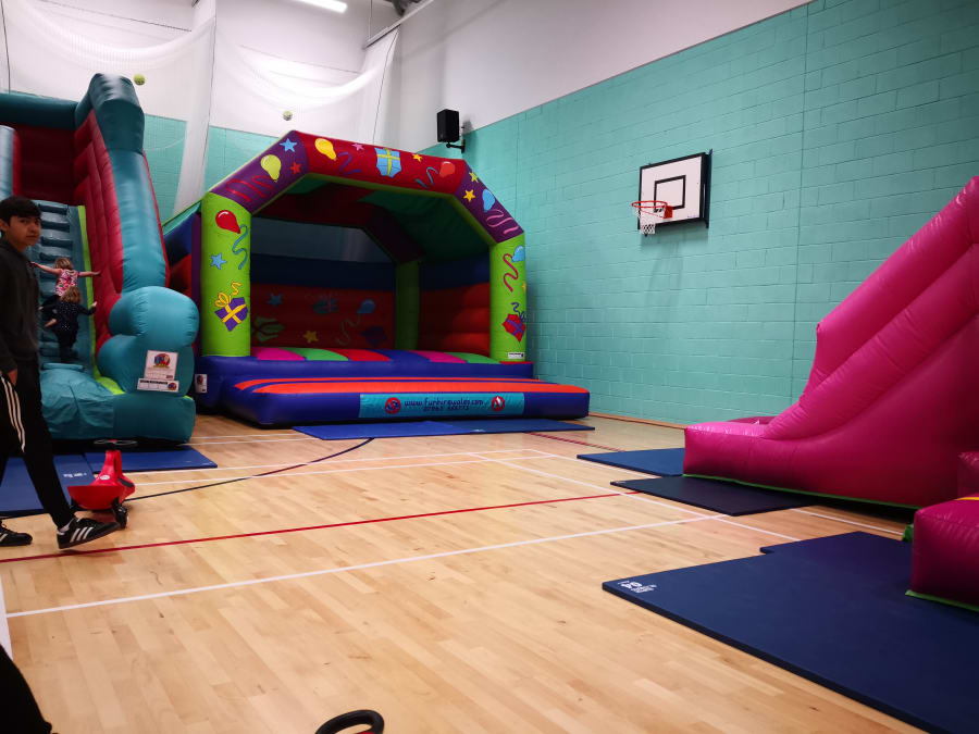 Dimensions: 25ft x 25ft x height 17ft Suitability: Outdoors & indoors (subject to space) Venue type Suitability: The Very large 'Party Bounce' bouncy castle can be used at any event including fetes, school activity days, weddings, fund-raising events, summer play schemes, playgroups, and private parties. Age Range: Great for all ages.