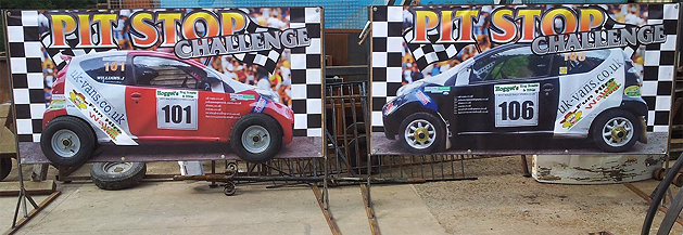 The pit stop challenge game comes with a realistic car background, 2 tyres each that competitors must swap over that are held on by four bolts. Each competitor will have a tyre changing tool that requires skill to use making it both challenging and fun for any age group and any event.