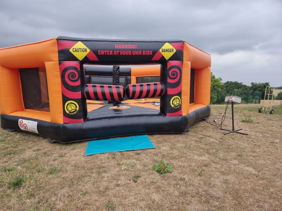 The idea is to jump over and duck under the rotating arms. The last man OR WOMAN!, standing is the winner. The speed and direction of the arms can be varied to suit the age and ability of the users. The price includes a trained member of our staff to operate and supervise the equipment. Please call or email us for further info etc.