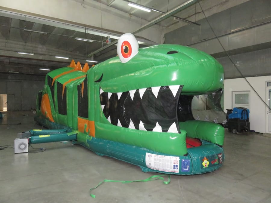 Venue type Suitability: The Lizard King Inflatable Obstacle Course can be used at any event including fetes, school activity days, fund-raising events, summer play schemes, playgroups, and private parties.