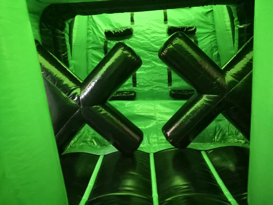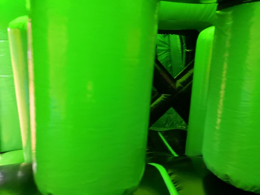 This is currently one of our biggest obstacle courses. This item is suitable for adults and children and really does keep all ages entertained! It includes a biff n bash section followed by a climbing wall which takes you to the top of the slide. Due to the assault course being suitable for all ages it is a great addition to weddings, garden parties, school fairs and community events.